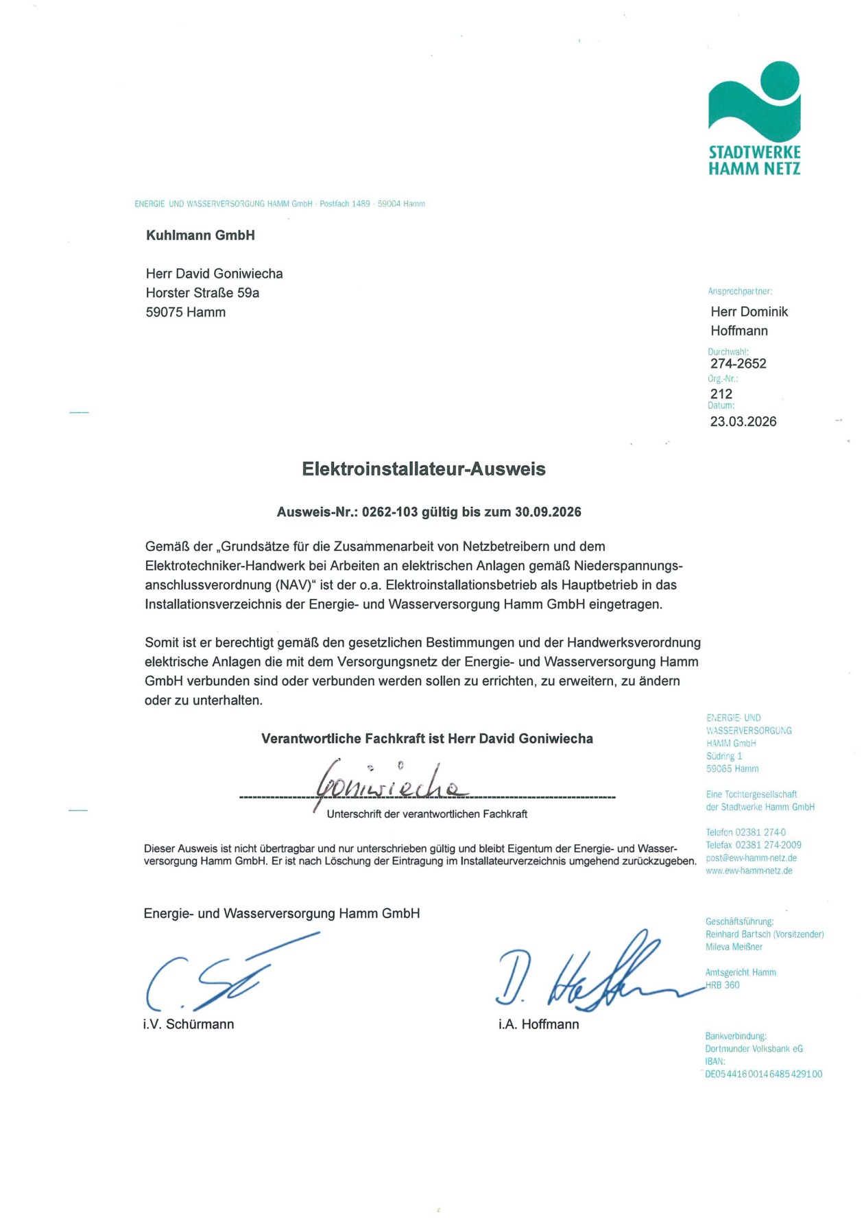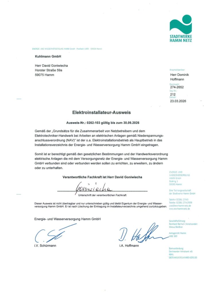 Heinz-Josef Kuhlmann hat dann den Service der Firma verstärkt, so dass zu dem ohnehin schon gutem Kundendienst auch noch Elektroinstallationen, Kältetechnik, Klimaanlagen- sowie der gerade aktuelle Kühlhausbau hinzu gekommen sind.